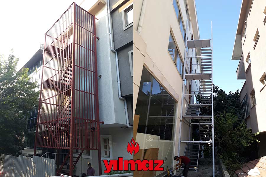 Dış etkenlere dayanım: Açık alan yangın merdivenleri korozyona ve hava şartlarına karşı korumalıdır.